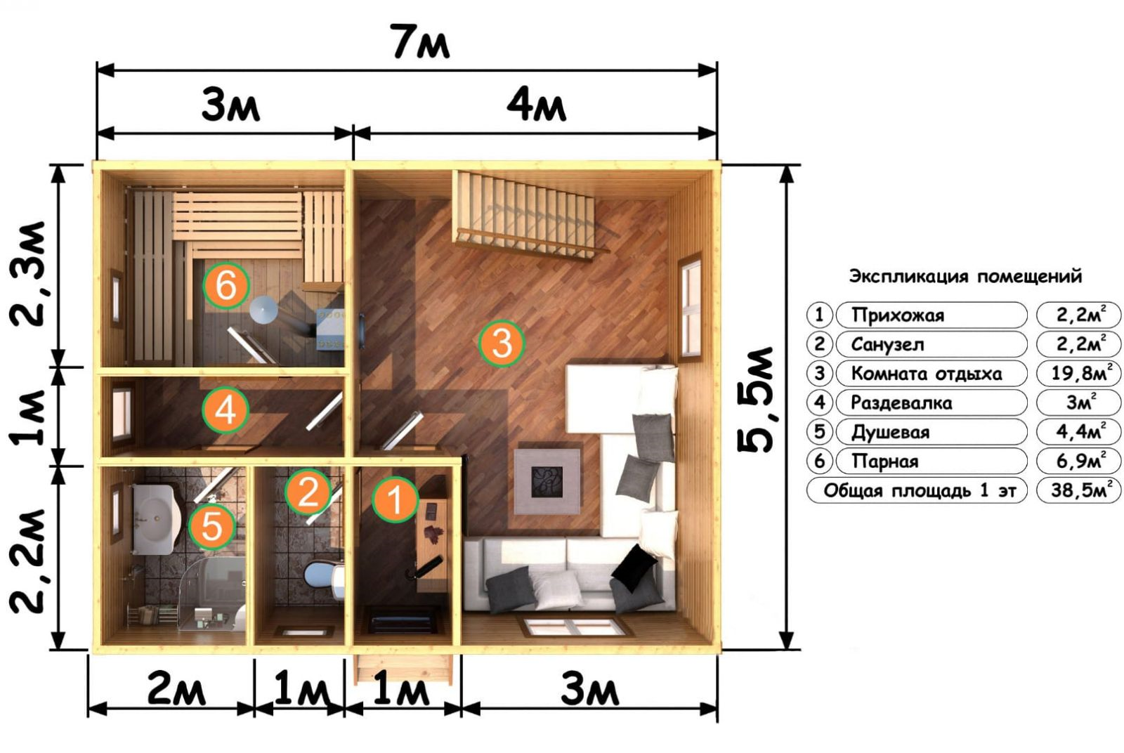 ГлавнаяДОМА-БАНИ — ДОМ-БАНЯ 60,5 КВ.М., 7*5,5 М. в Быковом