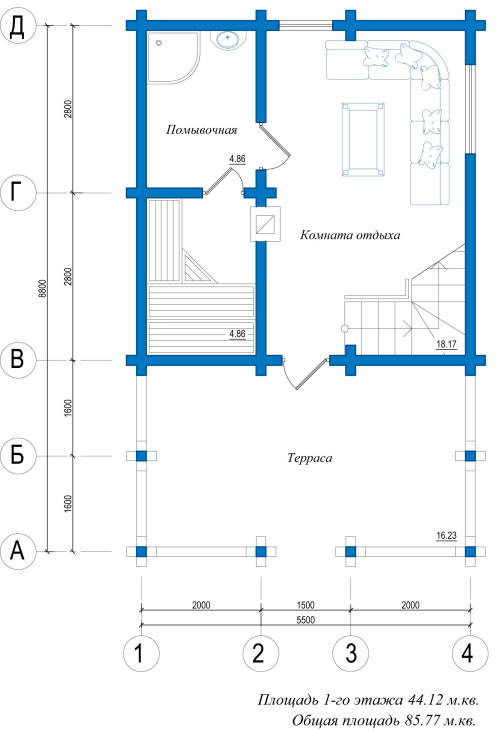 ГлавнаяДОМА-БАНИ — ДОМ-БАНЯ 85,77 КВ.М., 8,8*5,5 М. в Быковом
