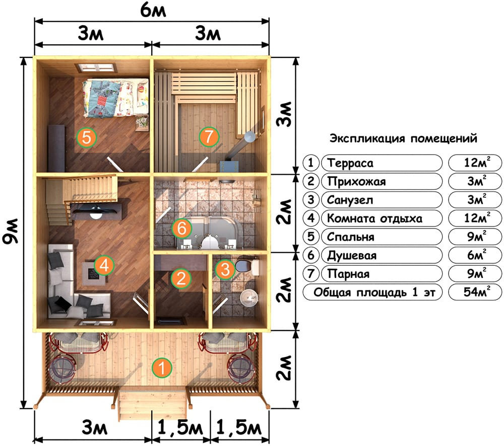 ГлавнаяДОМА-БАНИ — ДОМ-БАНЯ 94,5 КВ.М. 6*9 М. в Быковом